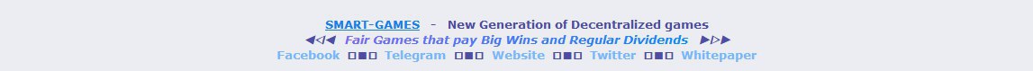 [/b][/i][b][url=http://www.facebook.com/SmartGames.io][color=#77b8fd]Facebook[/color][/url] ◁◁◁ [url=http://t.me/SmartGames_io][color=#77b8fd]Telegram[/color][/url] ◁◁◁ [url=https://smart-games.io/][color=#77b8fd]Website[/color][/url] ▷▷▷ [url=http://twitter.com/smartgames_io][color=#77b8fd]Twitter[/color][/url] ▷▷▷ [url=https://smart-games.io/whitepaper.pdf][color=#77b8fd]Whitepaper[/color][/url][/b][/color]